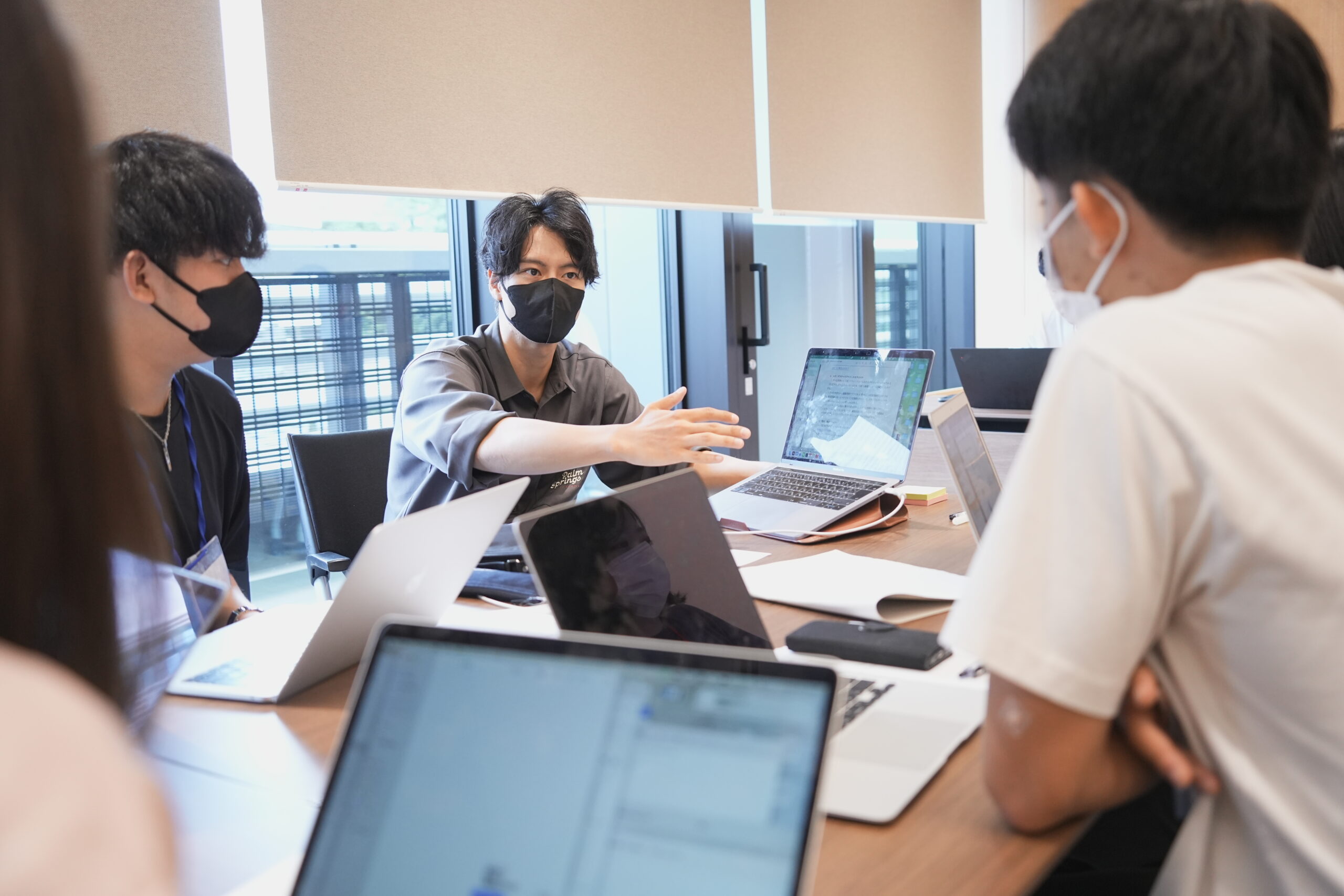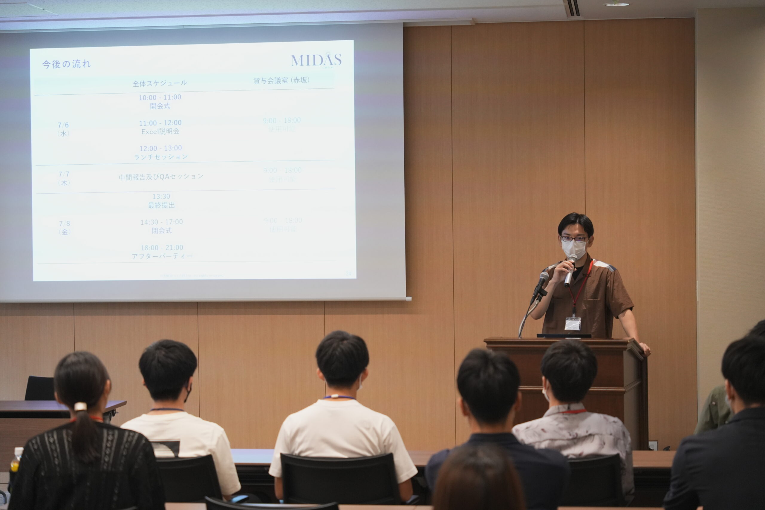 コンテストで学生たちに与えられたケース課題は、「資本金1億円を元手に、5年後に株式時価総額100億円になる事業プランを策定せよ」。半年以内の創業を仮定し、事業計画は5年分策定すること。さらに追加の資金調達の条件など、複数の前提をもとにそれぞれがプランを磨き上げます。限られた時間の中、最大限の力を発揮しようと奮闘する学生たち。その横にはミダスキャピタルのメンバーや投資先経営陣が寄り添い、これまでの経験をもとにアドバイスをします。