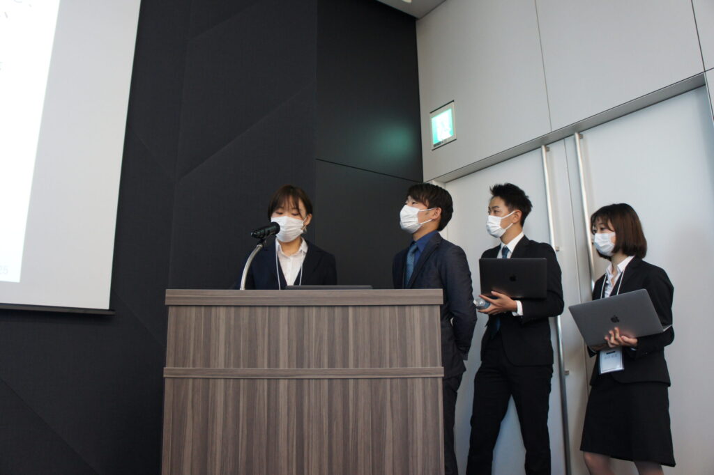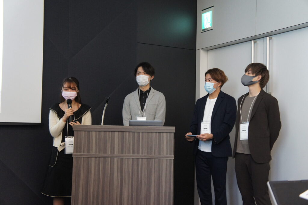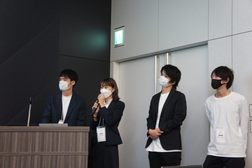 優勝したチーム2の佐々木浩平さん、岡本理沙さん、田原爽さん、池田健人さんに話を聞きました。