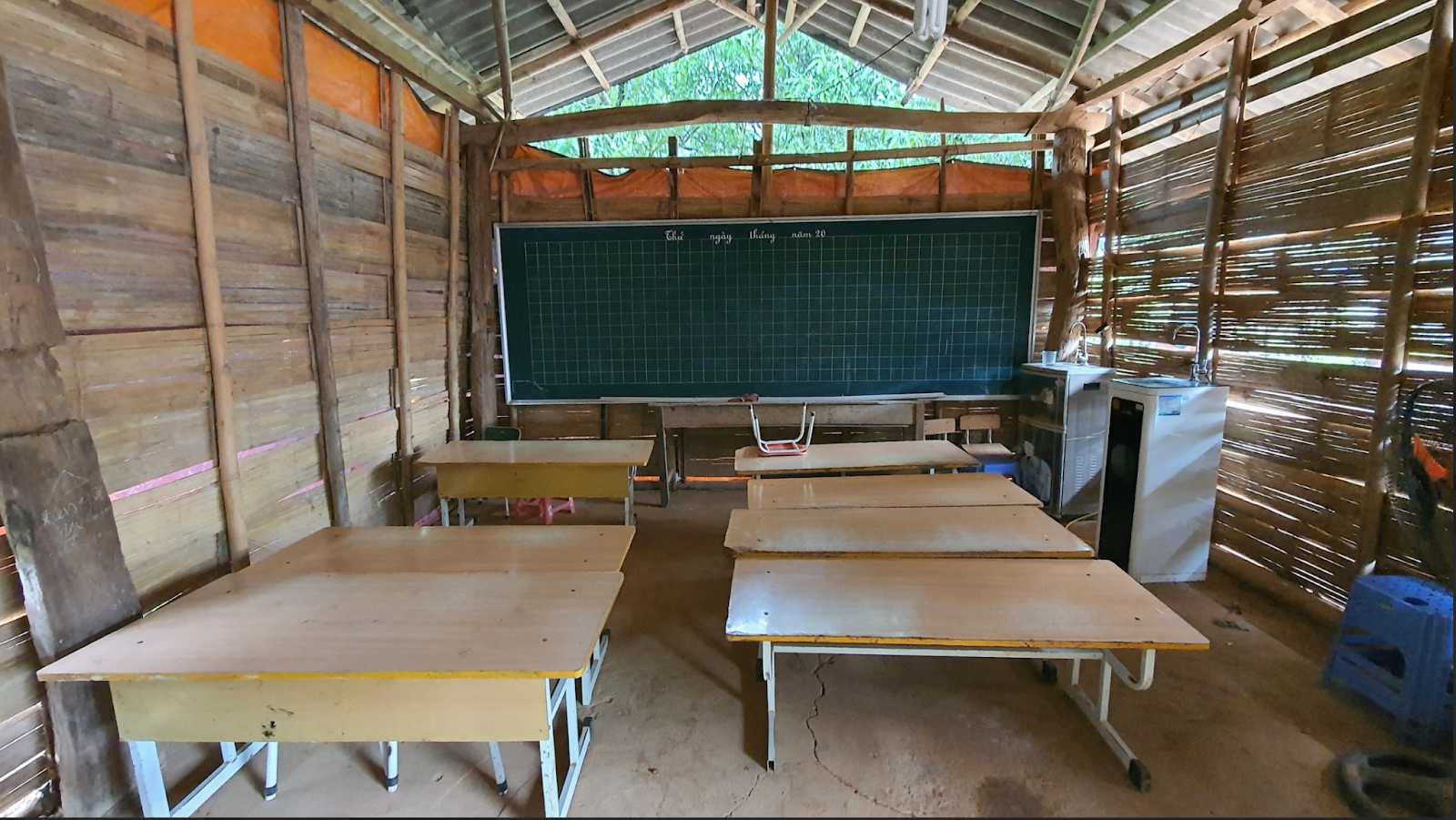 ベトナム北部の貧困地帯の小学校の様子。校舎は吹きさらしで、雨が降ると授業を受けることもままならない環境だった