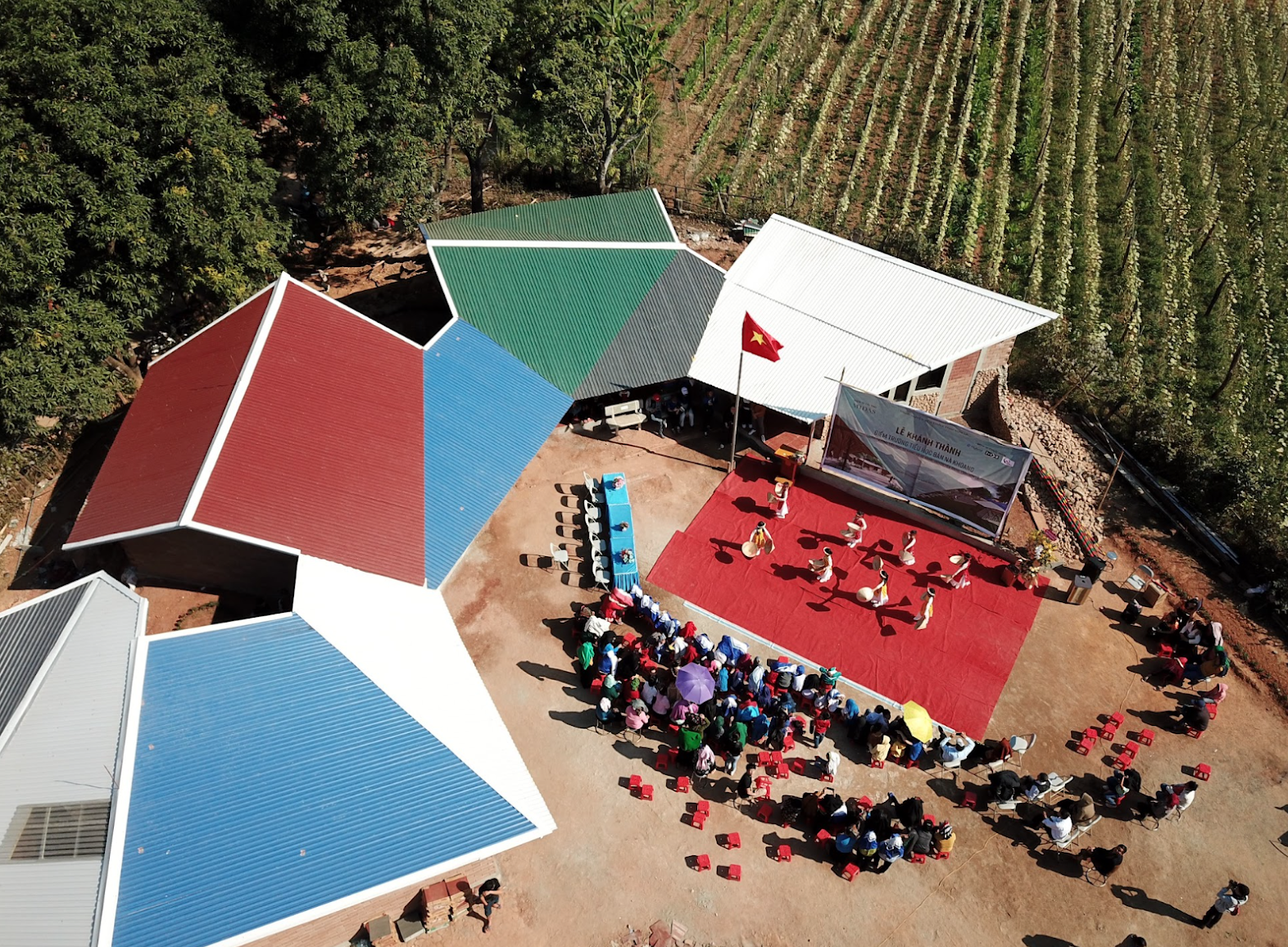 2020年に竣工したNa Khoang Elementary School。鮮やかなカラーの屋根が人目をひく。建て替え後は地域のシンボルとしても機能している